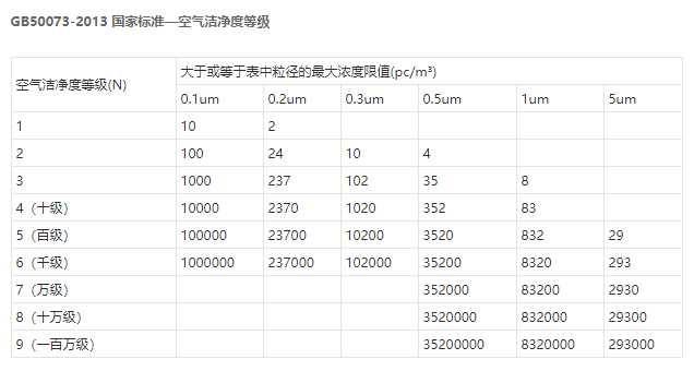 空氣潔凈度等級(air cleanliness class):潔凈空間單位體積空氣中,以大于或等于被考慮粒徑的粒子最大濃度限值進行劃分的等級標(biāo)準。國內(nèi)按空態(tài)、靜態(tài)、動態(tài)對無塵車間進行測試、驗收,符合《GB50073-2013 潔凈廠房設(shè)計規(guī)范》、《GB50591-2010 潔凈室施工及驗收規(guī)范》。