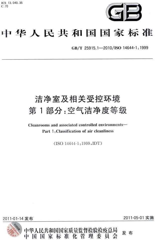 潔凈室及相關(guān)受控環(huán)境第1部分:空氣潔凈度等級(jí) GB/T25915.1-2010